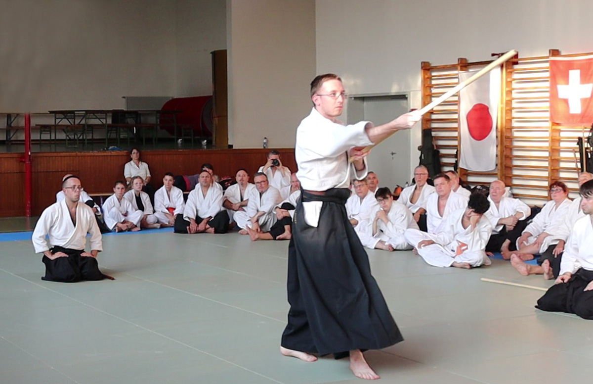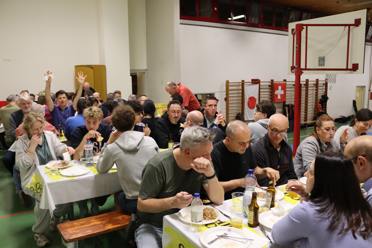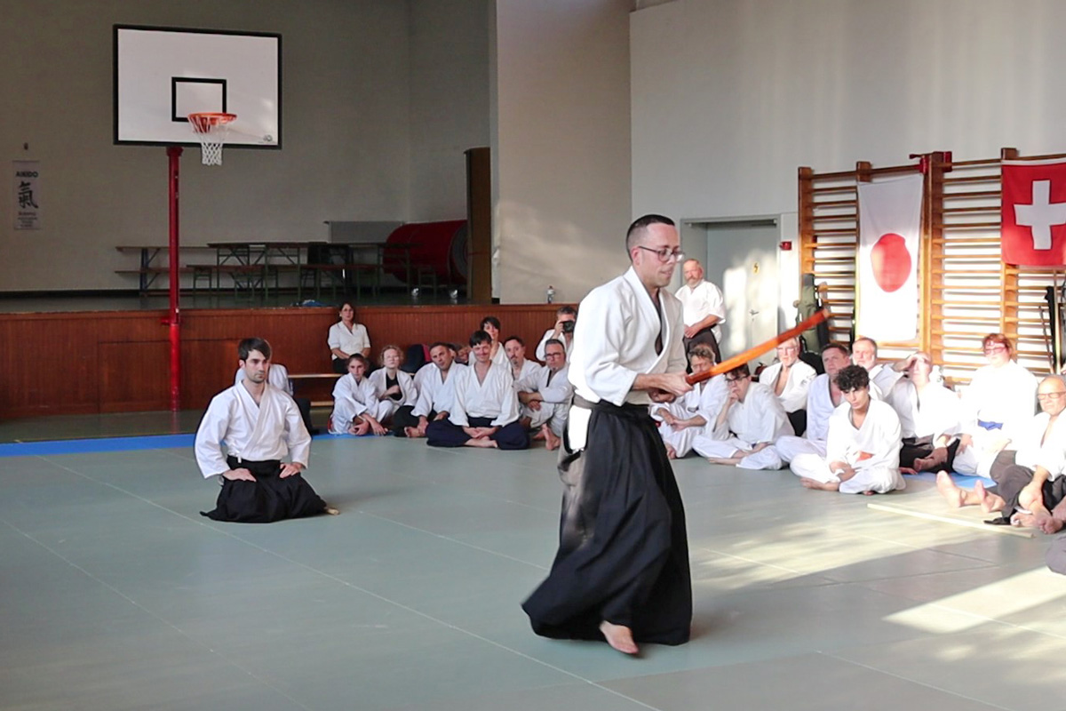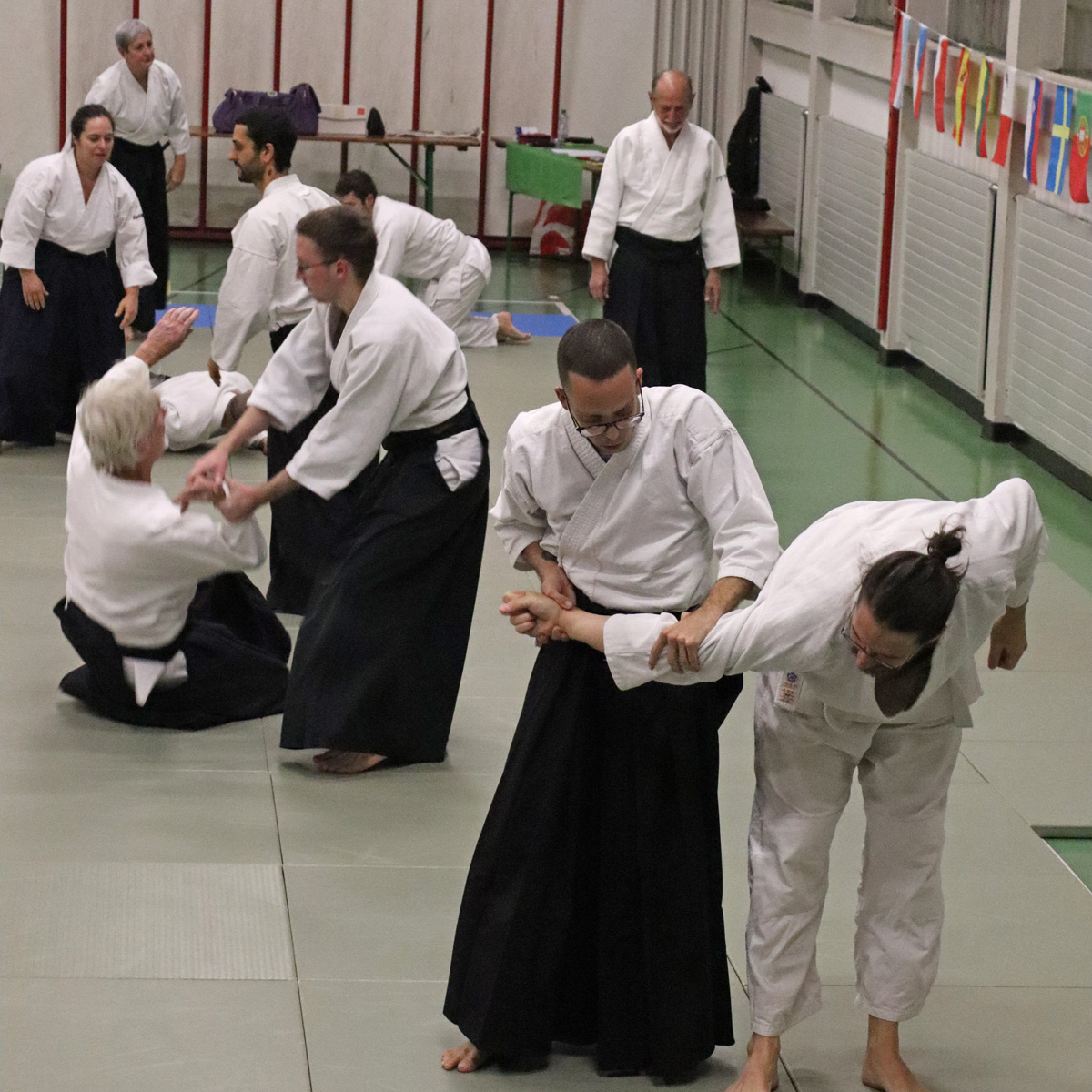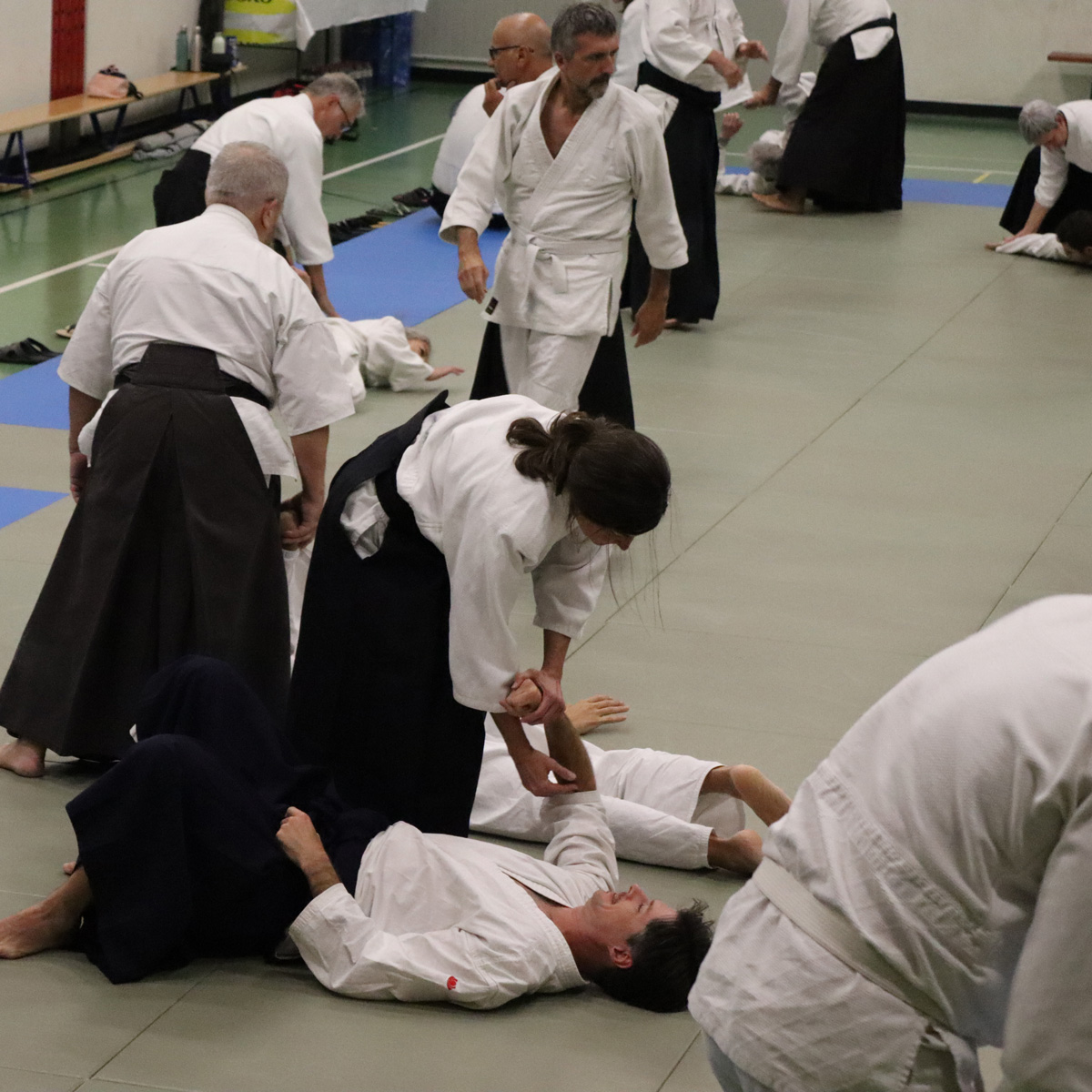 Schon am Freitagabend war die Matte gut gefüllt mit Teilnehmern aus der Schweiz, aus Ronchamp, aus Norditalien, aus Wien, aus Prag und aus Nürnberg. Eine grosse Gruppe aus Lüttich vom Ki Aikido de Sclessin war zwar zeitig in ihrer Unterkunft, der Casa Zen in Balerna, angekommen. Aber nach der langen Reise von 800 km in 5 Autos wollten sie sich erst einmal etwas ausruhen und nahmen am Freitagstraining noch nicht teil.