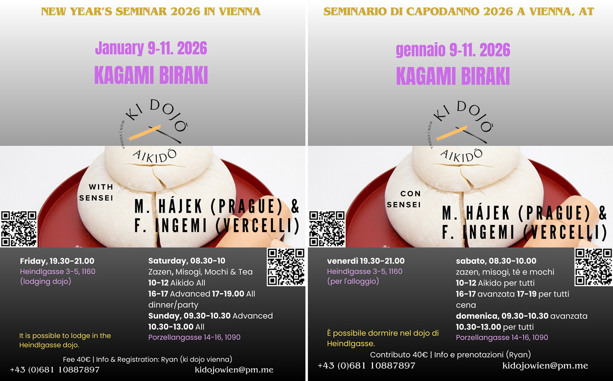 As the Vienna dojo doesn’t have its own premises, their numerous seminars have been held in various locations across the city. It was decided to keep the same theme and weekend for their 2026 seminar as in 2025: Kagami Baraki, or New Year’s Aikido seminar.
