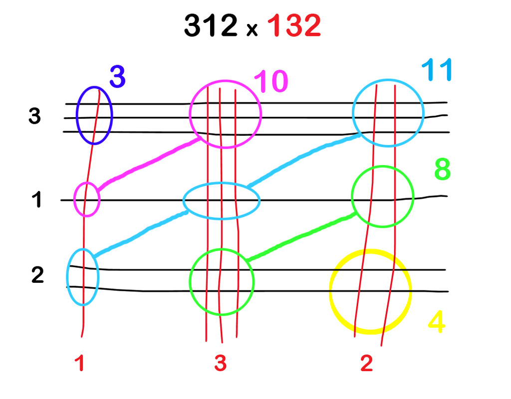 Da alcuni anni su Internet viene propagandato il “metodo giapponese di moltiplicazione”. Esso funziona tracciando linee che si incrociano e determinando poi il numero dei punti di intersezione. (Le immagini sopra mostrano altri metodi di calcolo storici.)
