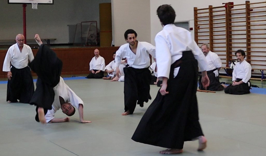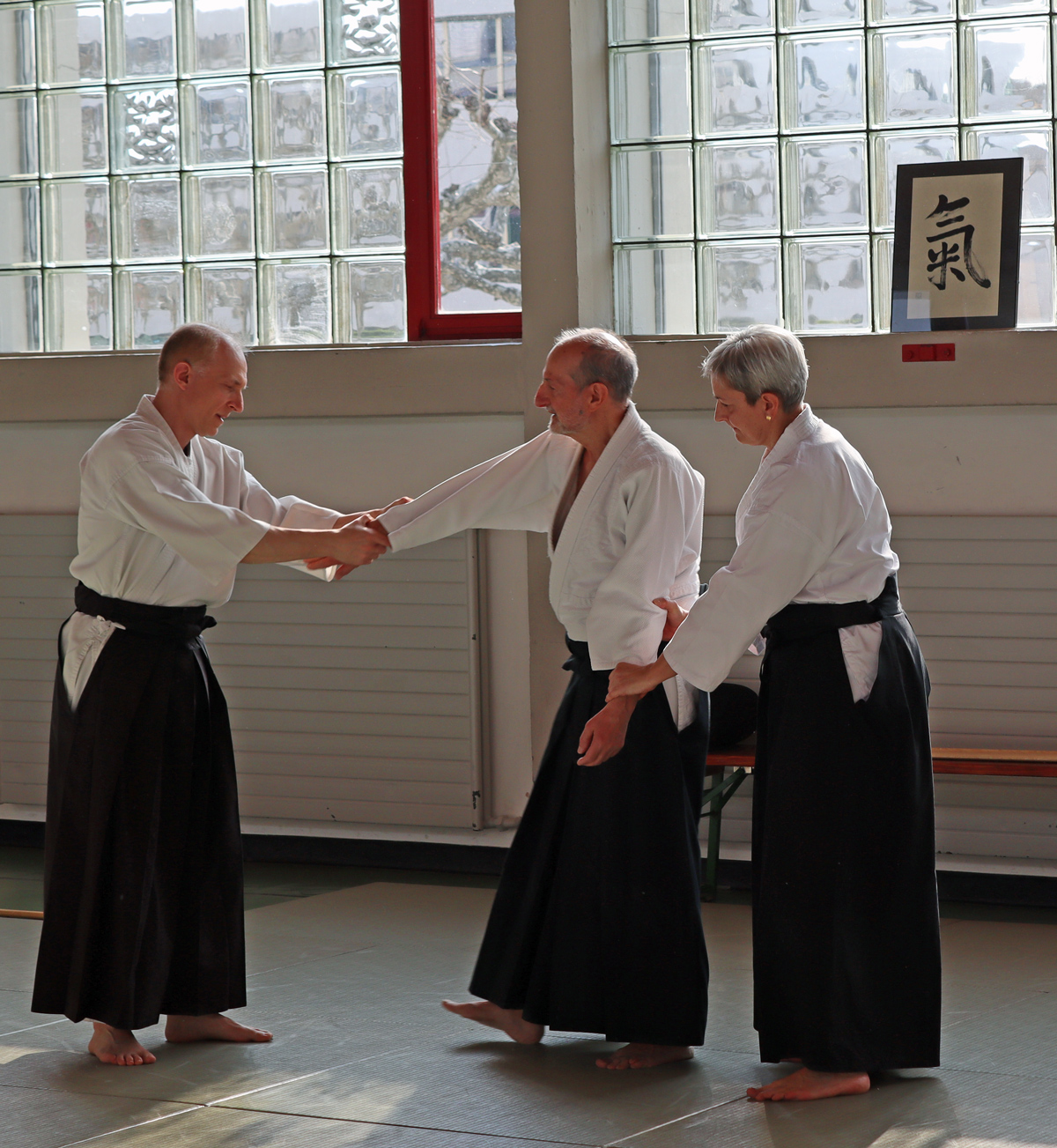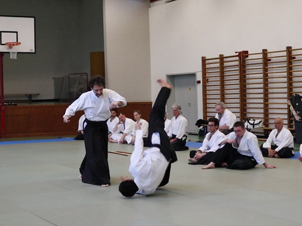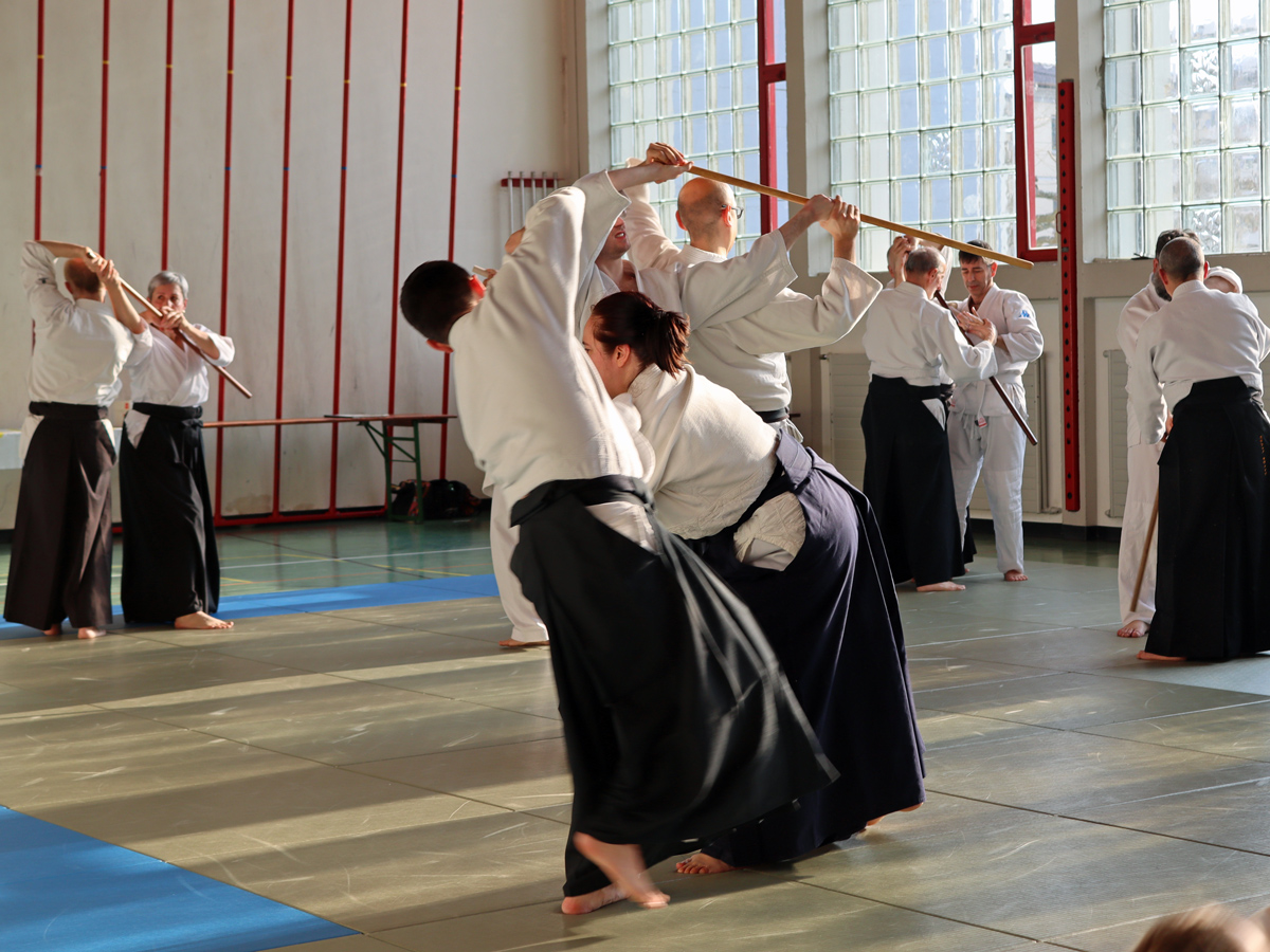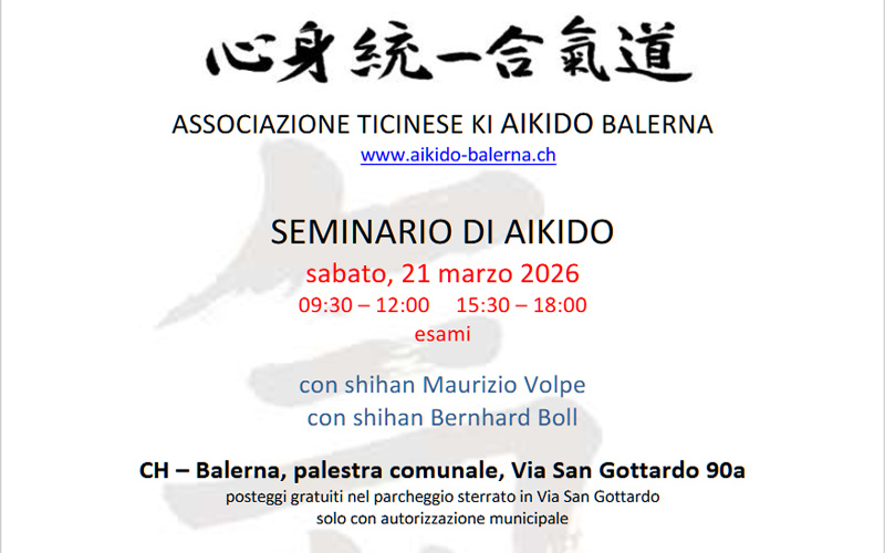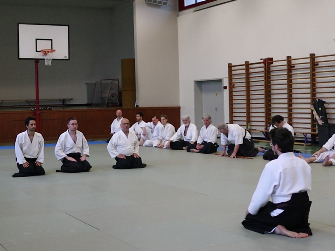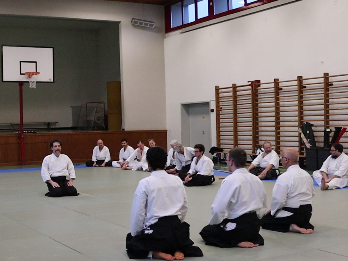 On Saturday, March 21st, the Associazione Ticinese Ki Aikido had invited to its usual one-day spring seminar in Balerna. The dojo members had already set up the entire 140 m² mat area by 8:30 a.m. Yvette and Geraldina welcomed the participants at the reception. Under sunny but crisp spring skies, the guests from out of town arrived at the hall. They came from Prague, Nuremberg, Lucerne, Sessa, Lombardy, and Piedmont.