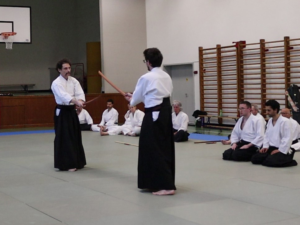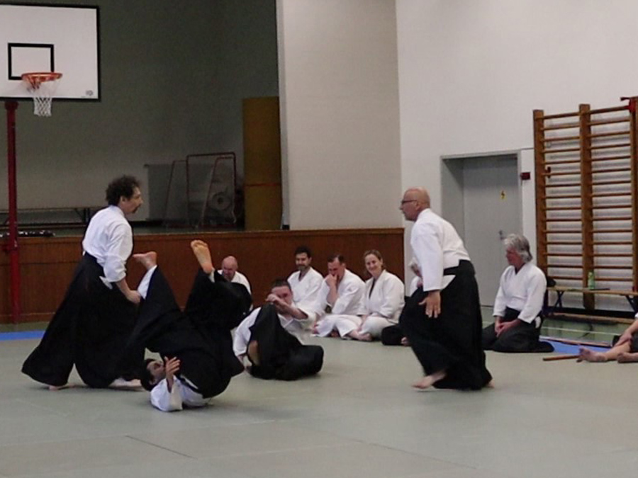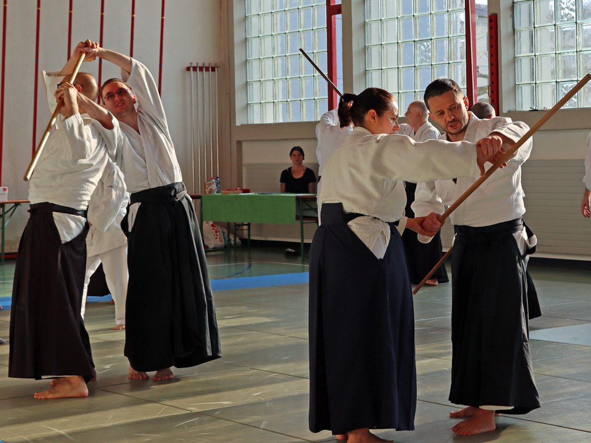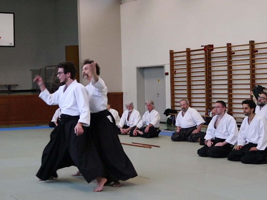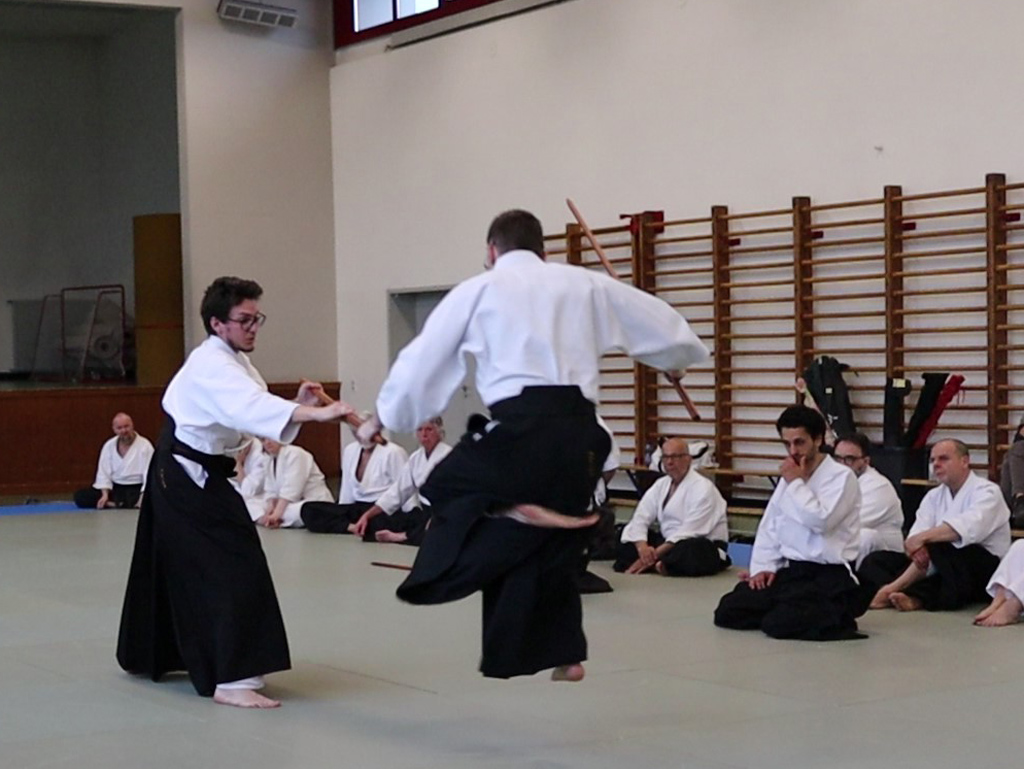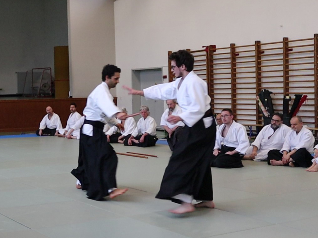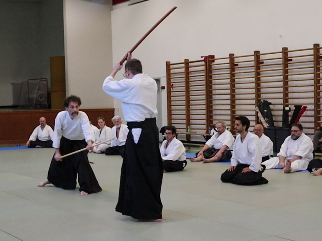On Saturday, March 21st, the Associazione Ticinese Ki Aikido had invited to its usual one-day spring seminar in Balerna. The dojo members had already set up the entire 140 m² mat area by 8:30 a.m. Yvette and Geraldina welcomed the participants at the reception. Under sunny but crisp spring skies, the guests from out of town arrived at the hall. They came from Prague, Nuremberg, Lucerne, Sessa, Lombardy, and Piedmont.